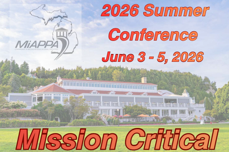 What is critical to achieving your mission? What changes impact your operation for the better? Share your success and best practices with over 250 active Michigan facilities professionals! We want to showcase what works in your operations! MiAPPA invites you to submit your proposal to share your best practices, innovative ideas, proven programs and projects with your facilities colleagues at the 2026 MiAPPA Summer Conference taking place at the Mission Point Resort on Mackinac Island.